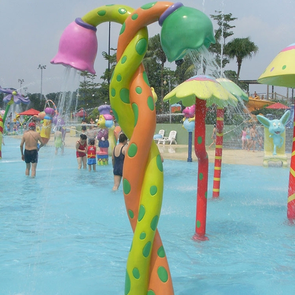 水上樂園設備戲水小品噴水花藤LT-HL17017設計為兩株色彩斑斕的花藤互相纏繞。顏色動感明亮,造型非常逼真。加上噴水效果。猶如那花海雨林。讓孩童仿佛置身于童話王國,蕩漾在花海的世界里。讓孩子在愉快的玩耍過程中放松身心,并對鮮花植物加深認識。特別適合水上樂園設備親子戲水樂園兒童戲水池中的一款輔助設備。廣州浪騰獨特設計產品。